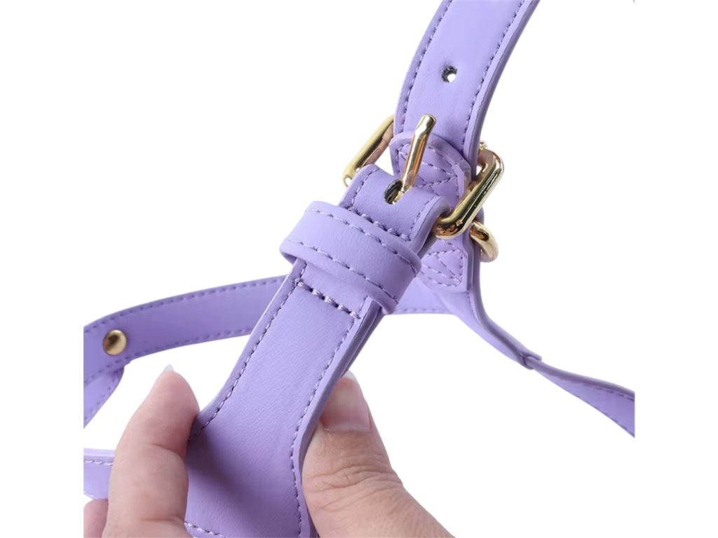 Postroj LUXURA je navrhnutý pre majiteľov, ktorí hľadajú kombináciu elegancie a funkčnosti. Postroj vo fialovej farbe je doplnený o kovové prvky v zlatej farbe, čo dodáva vášmu psovi sofistikovaný vzhľad.